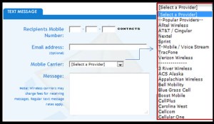 Regular rates apply, please check with the recipients before sending a text message to them. You can send text messages to any of the major United States cellular services. Click the link.
